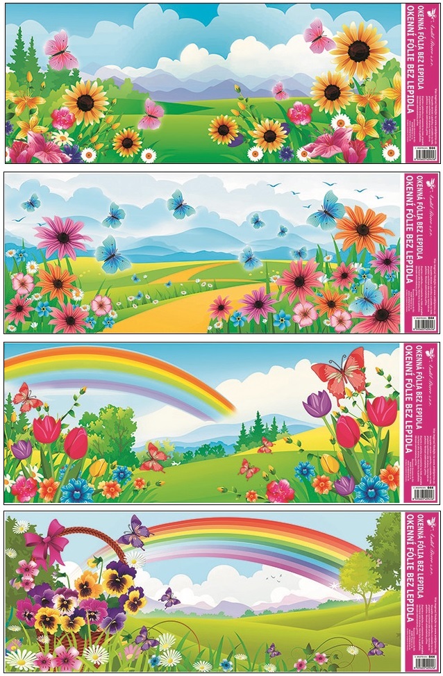 Dekorační okenní fólie. Naše okenní fólie neobsahují lepidlo. Na plochu přilnou elektrostaticky a nezanechávají tedy po sobě žádnou stopu. Vhodné jsou jakékoli hladké plochy, například sklo, výlohy, zrcadla nebo kachličky. Čisté - bez lepidla - opakovaně použitelné Použití: 1.Doporučujeme před použitím plochu očistit od prachu a jiných nečistot. 2.Fólie se snadno aplikuje sejmutím z podkladového papíru a umístěním na hladkou plochu. 3.Fólii přiložte a vyhlaďte případné bublinky rukou nebo suchým hadříkem. 4.Po použití je možné je uložit na původní podkladový papír a uskladnit na další sezónu.